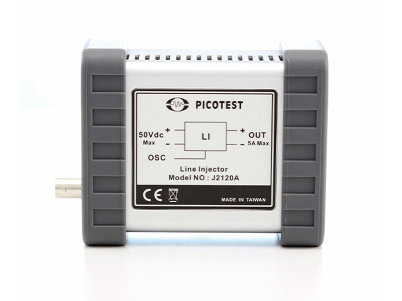 The line injector allows the input DC supply voltage to be modulated by the network analyzer source signal, as in the case of a PSRR measurement. The line injector must be capable of a frequency range well below the AC line frequency and at least above the control loop bandwidth of the circuit being tested.